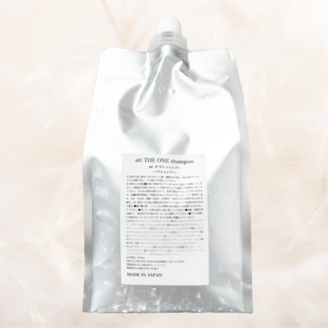 att THE・ONE の1000ml詰め替えレフィルサイズになります。 300mlボトルに詰め替えて使用してください。 att THE ONEは”ただ洗う”のではなく、“髪と頭皮をベストな状態に優しくリセット”するために独自のバランスで設計された【一家に一本必要不可欠】なシャンプーです。 清涼感のある、控えめで上品なシルクホワイトリリーの香り 一般的なクレンジングシャンプーは、強い洗浄成分で汚れを引き剥がすタイプが多い中、att THE ONEは全く違います。 特殊なオイル成分+特殊な乳化型シリコーンを駆使し、強い洗浄力に頼らずに、汚れ・皮脂・被膜成分・スタイリング剤残留物質を優しく乳化して包み込んで浮かせてリセット。 頭皮や髪に負担となる石油系、高級アルコール系不使用。 頭皮や髪に必要な潤い、脂質を残し、髪も地肌も乾燥させない、頭皮や髪の未来を考えた独自のリセット処方。 ◆一般クレンジングシャンプーとatt THE ONEの比較 ・汚れの落とし方 一般:強い界面活性剤で皮脂・汚れを”剥がす” att THE ONE:特殊オイル・乳化型シリコーンで汚れを”浮かせてリセット” ・洗浄力 一般:洗浄力が強く、頭皮や髪が乾燥しやすくダメージする att THE ONE:石油系、高級アルコール系不使用。頭皮や髪に対して最小限の洗浄力+保湿力 ・髪の質感 一般:ギシギシ・パサパサしやすく、切れ毛や枝毛の原因に att THE ONE:根元からふんわり・サラサラ ・頭皮への刺激 一般:比較的強く、フケや痒みが出やすい。乾燥や炎症により、頭皮環境の悪化がしやすい att THE ONE:超低刺激設計により炎症が起こりにくく、頭皮環境も整いニオイも抑制 洗った直後から”髪も頭皮も素の健康な状態に導く”事で、その後のトリートメントの浸透性、栄養成分の吸収が抜群に上がります。 トリートメントの持続力が上がり、サロン施術後の美しさを長持ちさせます。 ◆具体的な効果・効能 1.ダメージ補修効果 【ヘマチン】が毛髪内部に浸透し、ケラチンタンパクの結合を補修・強化します。 → ダメージホールを埋めて髪の密度を高め、枝毛・切れ毛を防ぎます。 → カラーやパーマ、縮毛矯正後のダメージの要因となる残留物質を 分解し、サロン施術を長持ちさせる。 毛母細胞活性化による育毛サポート効果もあり。 メラニン生成促進効果により、白髪予防サポートにも期待できる成分。 【グルタミン酸】によるアミノ酸補給保湿。 2. 頭皮環境の改善効果 【メマツヨイグサ種子エキス】【グリチルリチン酸2K】【ピロクトンオラミン】が、頭皮の炎症・赤み・かゆみを抑制。 → 乾燥フケ、脂性フケの発生を防ぎ、健康な頭皮を保ちます。 毎日の使用でも頭皮や髪に負担にならず、敏感肌対応のシャンプー設計。 3. 抗酸化・エイジングケア効果 【スーパーオキシドジスムターゼ(SOD)】【ルイボスエキス】による強力な抗酸化作用。 → 活性酸素による頭皮老化を防ぎ、薄毛・細毛、予防にも繋がります。 紫外線やストレスによる酸化ダメージから、頭皮・毛髪を守ります。 4. 頭皮の清浄・ニオイケア効果 【サピンヅストリホリアツス果実エキス】 天然のサポニン(植物由来界面活性剤)豊富。 頭皮の洗浄・整肌効果を持ちつつ、極めてマイルドな洗い上がり。 フケ防止、かゆみ抑制、頭皮環境改善に効果的。 【(クロロフィリン/銅)複合体】 天然由来の抗酸化・消臭成分。 頭皮の酸化抑制・ニオイ抑制効果に優れ、頭皮ケア効果を補強。 ⭐︎このようなお悩みの方にオススメ ・ビルドアップ(重くゴワゴワ)してベタついて髪が乾かない ・重めのオイル類、シリコーン(被膜)が残留した癒着毛 ・スタイリング剤・オイル・スプレーを頻繁に使う ・皮脂が多めで頭皮や髪がべたつきやすい ・トリートメントの効果を感じにくい ・カラー、ブリーチ、パーマ、縮毛矯正でダメージが気になる ・頭皮が敏感・乾燥している人(刺激に弱い ・加齢による髪質変化(細毛・抜け毛)が気になる ・ぺたっとしやすくボリュームが出にくい ・地肌のムズムズ感、ニオイが気になる 【使用方法】 38〜40度以下のお湯で3分程度予洗い後、適量を泡立てて頭皮をマッサージするようにシャンプー。 毎日使用も可能ですが、重くなりやすい方はattシルクシャンプー、attビューティスキンケアソープの前に、att THE ONEをプレシャンプーとして軽く泡立てて使用する事で、その後のシャンプーやトリートメントの栄養成分を促進し、より効果的にアプローチができます。 毎日ではなくても、サポートとして3日に1度使用する事で、頭皮や髪の環境も健康的な素髪の状態に整い、乾きやすい本来のサラサラ質感に導きます。 【シャンプーとしての使用目安量】 ショート・ボブ・ミディアム(鎖骨) 1プッシュ セミロング・ロング 1〜2プッシュ ※毛量や状態によって適正量は変動します